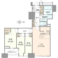 ●56階 94.28m2 3LDK+WIC