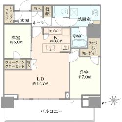 - 間取り2LDK+2ウォークインクローゼット