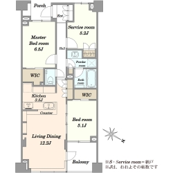 - 間取り2LDK+S+2WIC+SIC