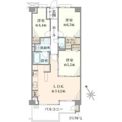 「都筑ふれあいの丘」から平坦で徒歩4分 3LDKに変更可能な93.77m2(要別途費用)