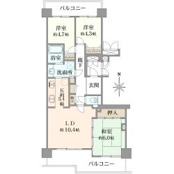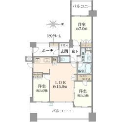 70.5m2(別途トランクルーム0.63m2)/ 3LDK / 南西向き12階