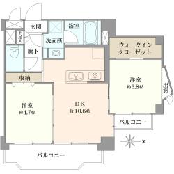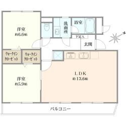 - 間取り2LDK+ファミリークローゼット