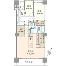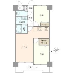 70.42m2の南東向き2LDK+ウォークインクローゼット+ストレージ