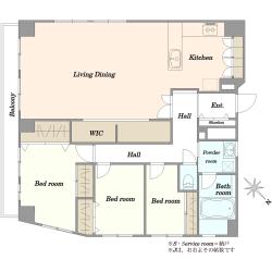- 間取り3LDK+2ウォークインクローゼット+納戸