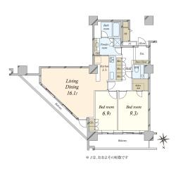 ◆93.45m2 2LDK+2WIC 3階部分 南向き