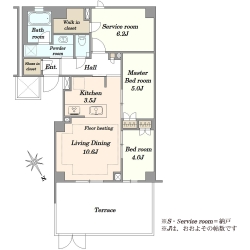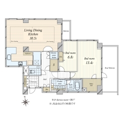 ■専有面積「67.86m2」・広々とした「2LDK+サービスルーム+SICタイプ」の間取り構成