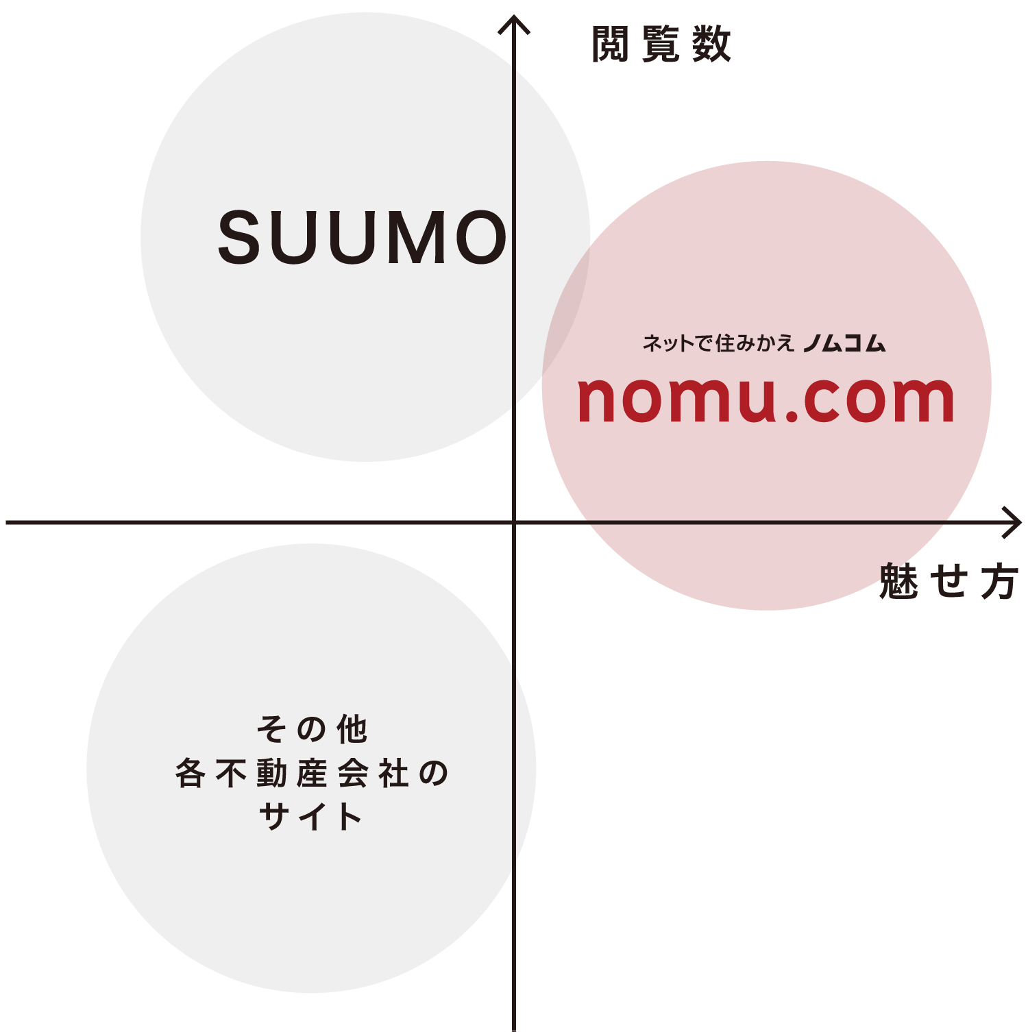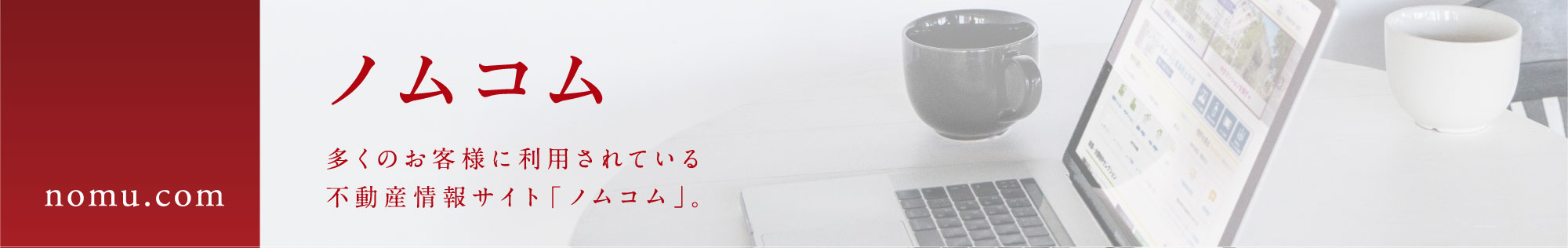 ノムコムは個別の不動産を最も魅力的に見せることのできるサイト、いわば「質」にこだわったサイトです。SUUMOは最も多くのお客様の目に触れさせることができるサイト、いわば「量」にこだわったサイトです。この二つを活用した2段構えのネット戦略が当社の強みです。