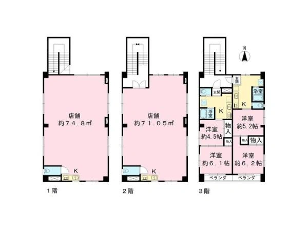 (1・2階店舗、3階住戸2DK×2戸)
