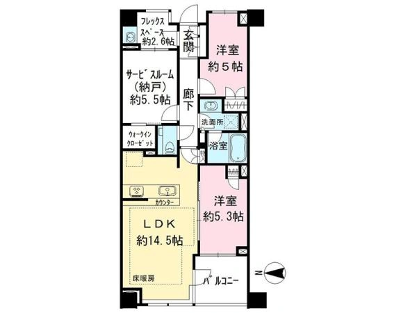 | バルコニー面積 | 5.75m2 | 向き | 西 |