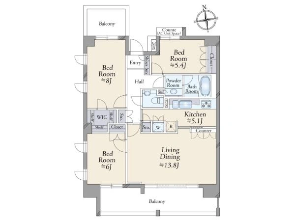 | 専有面積 | 85.3m2 | 間取り | 3LDK |