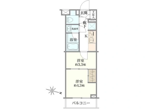 | 専有面積 | 25.77m2 | 間取り | 2K |
