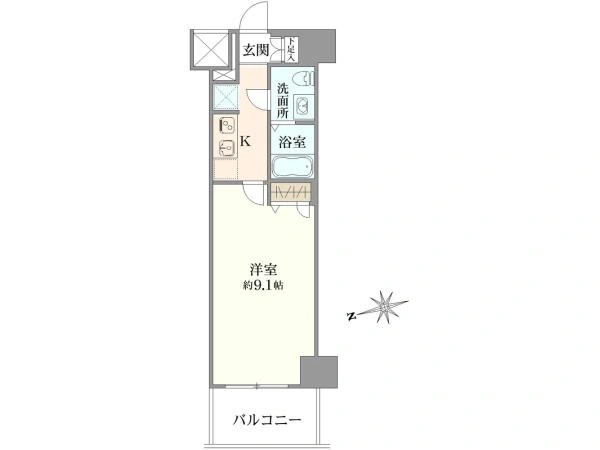 専有面積 26.93m2 間取り 1K