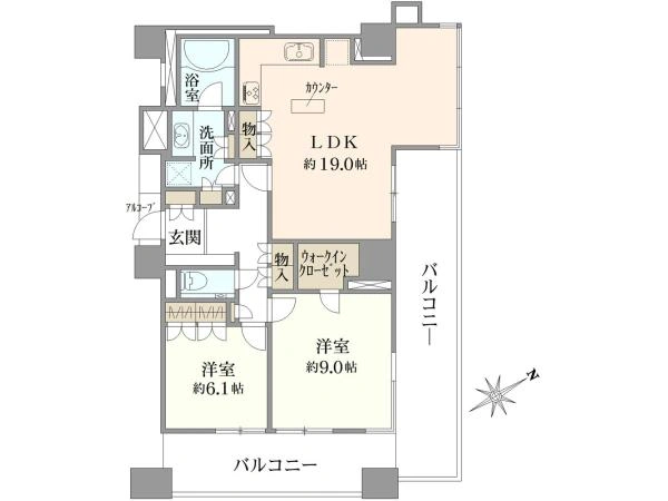 | バルコニー | 2面バルコニー |