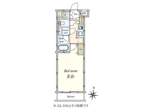| 専有面積 | 25.37m2 | 間取り | 1K |