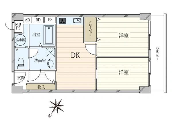 | 専有面積 | 44.45m2 | 間取り | 2DK |