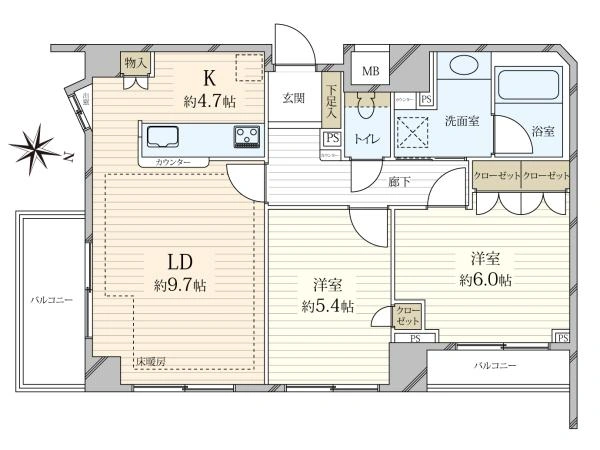 | 専有面積 | 59.95m2 | 間取り | 2LDK |
