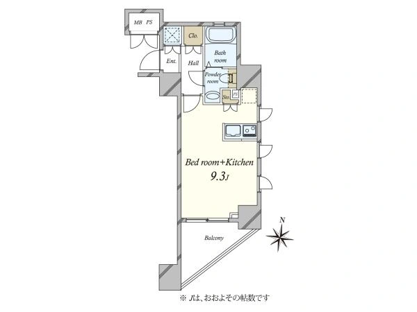 専有面積 24.35m2 間取り 1K