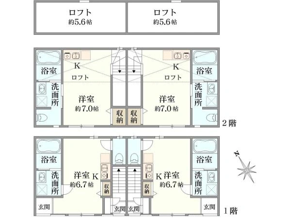 | 延床面積 | 86.54m2 | 土地面積 | 61.44m2 |