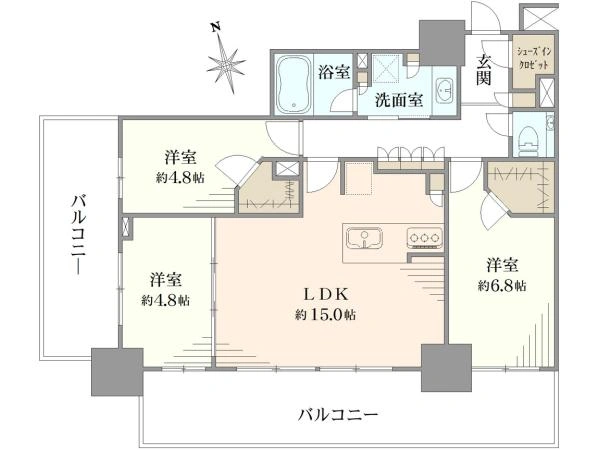 | 専有面積 | 74.64m2 | 間取り | 3LDK+2WIC・SIC |