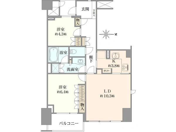 | 専有面積 | 60.38m2 | 間取り | 2LDK |