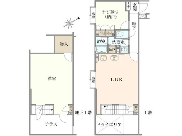 - ■地下1階・1階部分メゾネット住戸 ■1SLDK/88.19m2