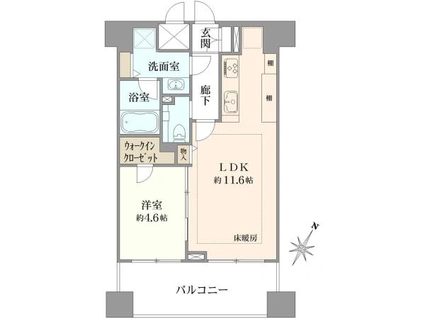 □ 廊下部分が少なく、無駄の無い間取りの1LDK