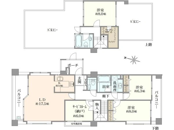 | バルコニー面積 | 17.43m2 | 向き | 北西 |