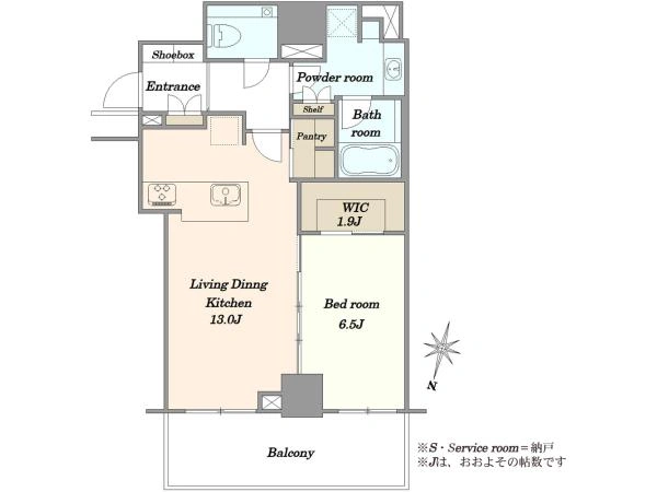 専有面積 55.47m2 間取り 1LDK+WIC