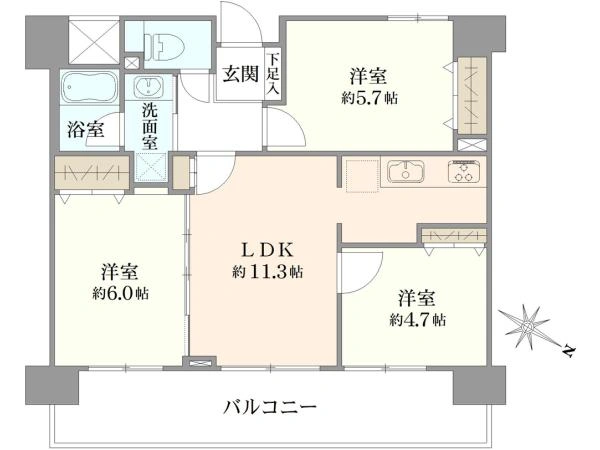 | 専有面積 | 61.36m2 | 間取り | 3LDK |