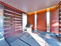 天球を模したオーバルの天井、天然石の床、間接照明の柔らかな光。