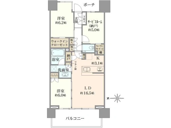 サービスルーム付きにより、