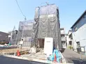 建築中の外観:全2区画、全2棟現場、1号棟 右側