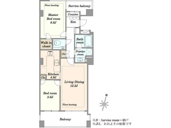 | 備考 | ●分譲時会社 / 三井物産株式会社●施工会社 / 前田建設工業株式会社 ※サービスバルコニー面積:5.96m2 |