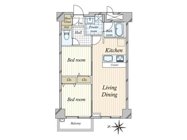 専有面積 | 46.31m2 | 間取り | 2LDK |