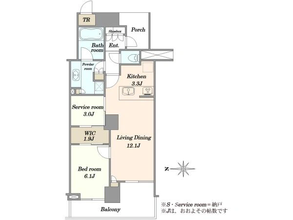 (1)専有面積60.10m2にトランクルーム1.05m2を含みます。