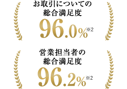 ※ 2024年9月21日~2025年3月20日の間に当社にてお取引いただき、アンケートにて「大変満足」「満足」「普通」「やや不満」「不満」の5項目のうち、「大変満足」「満足」とご回答いただいたお客様の割合