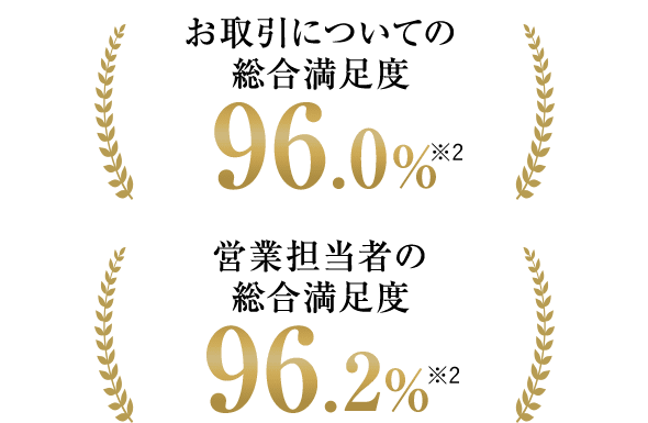 ※2 2024年9月21日~2025年3月20日の間に当社にてお取引いただき、アンケートにて「大変満足」「満足」「普通」「やや不満」「不満」の5項目のうち、「大変満足」「満足」とご回答いただいたお客様の割合